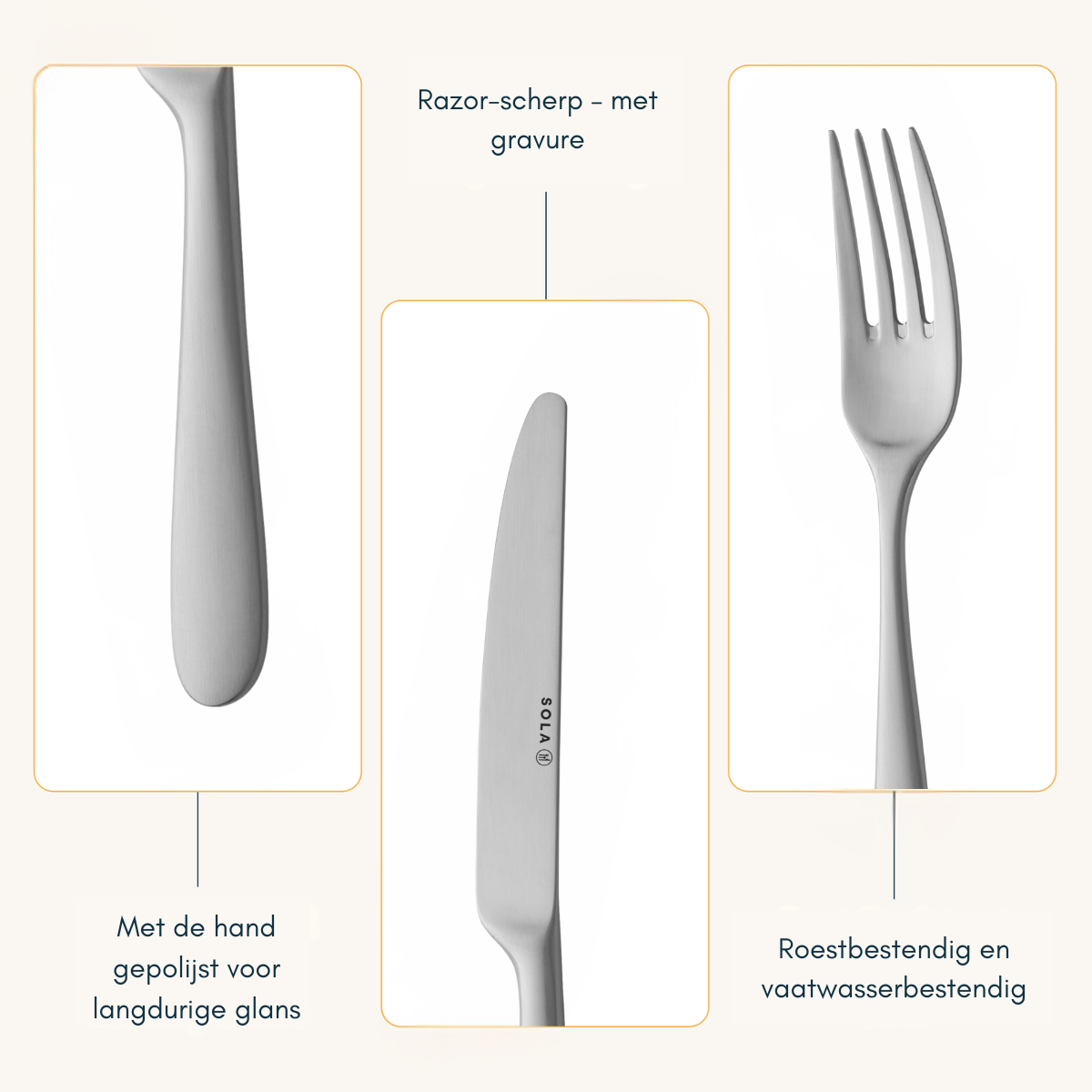 The Sola Nordica cutlery line is not only stylish but also practical. It is dishwasher safe, making it suitable for everyday use. With its timeless and versatile design, the Nordica collection fits any occasion, from an informal dinner to a festive meal. An ideal choice for those who appreciate modern design and excellent quality!