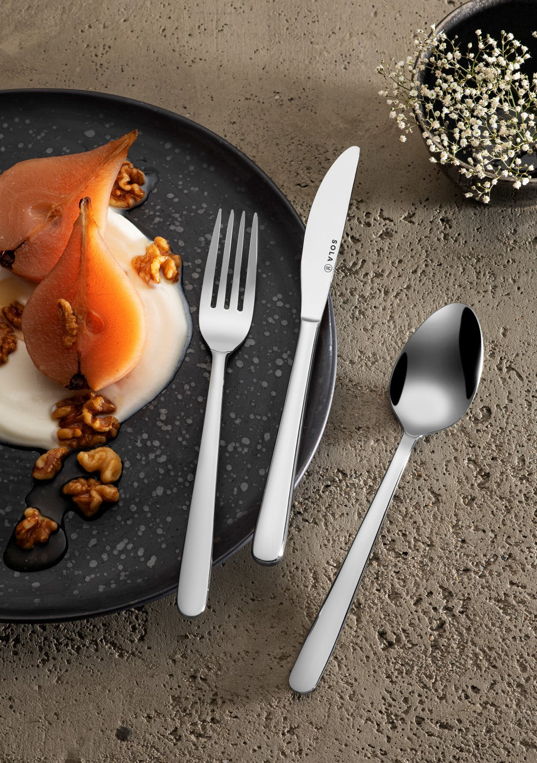 The cutlery made of 18/10 stainless steel is dishwasher safe.