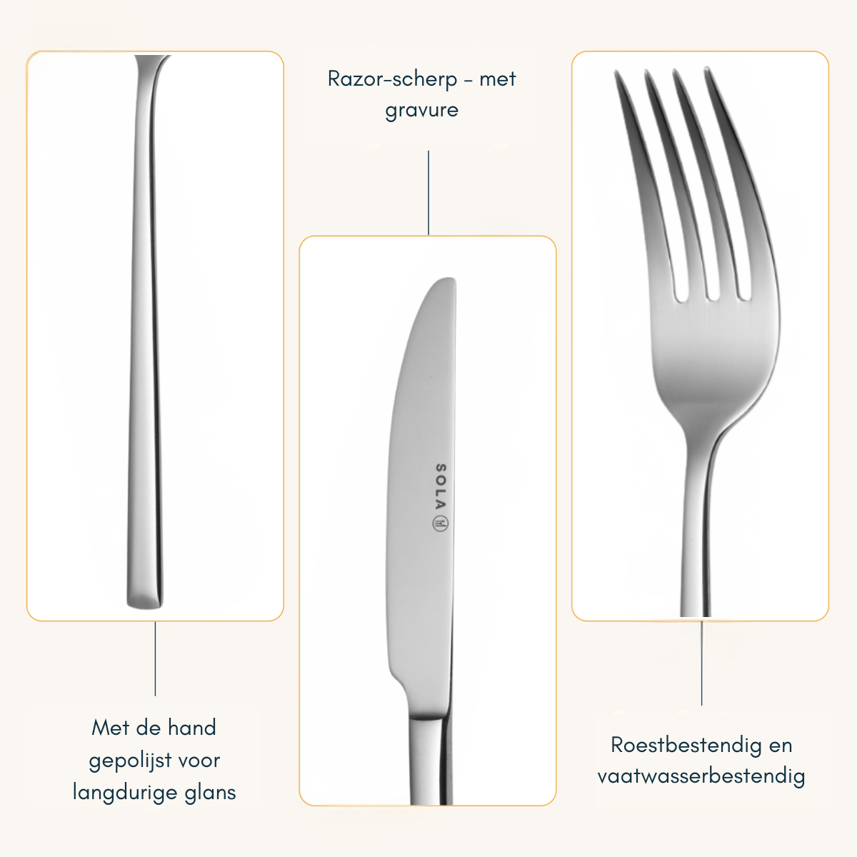 The Sola Luxor collection is a stylish and modern cutlery line that combines functionality and luxury. With its sleek, contemporary design and high-gloss finish, this collection exudes sophistication, making it ideal for both everyday use and festive occasions.