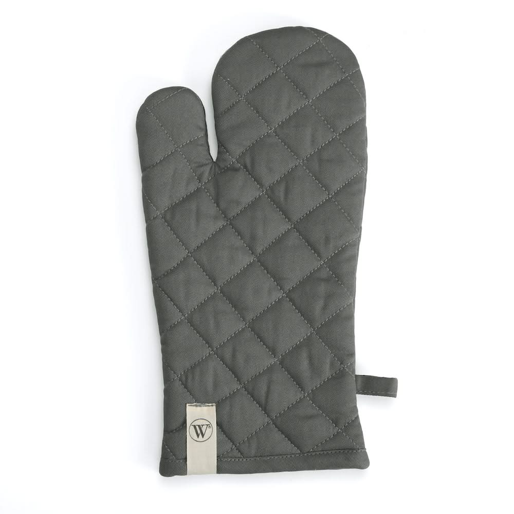 This oven mitt from the Walra Cook with a Smile collection is made of 100% cotton and has the perfect thickness to grip hot items. The oven mitt has convenient loop for easy hanging. The oven mitt has an off black color with a checkered texture and has a size of 16 x 32 cm.