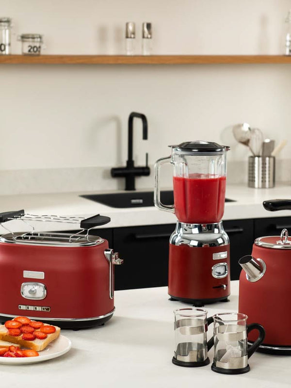 With the Westinghouse Retro Toaster you can toast 2 slices of bread at the same time. The stylish toaster is equipped with 2 slots that hold 2 solid slices of bread, a warming rack and automatic centering function. Thanks to the adjustable browning positions, you are always guaranteed delicious, evenly toasted bread. Moreover, the unit also features a defrost, - a heat, - and a cancel function. Combine the toaster with other kitchen appliances from the Westinghouse Retro Series and create a stunning kitchen!
