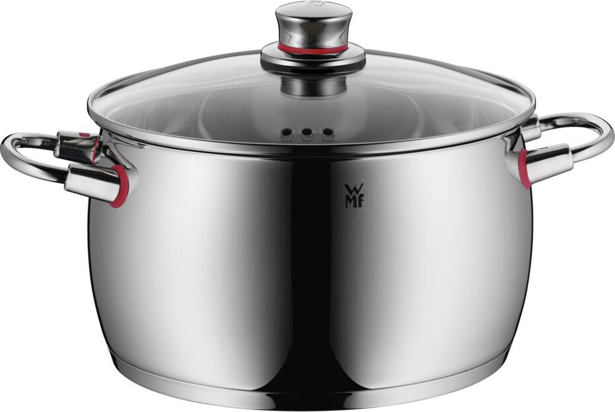 Discover the WMF Quality One cookware set: a complete set of five high-quality stainless steel pots designed for everyday use. Thanks to the patented Cool+ technology, the hollow handles remain cool during cooking, providing extra safety and comfort. The set is suitable for all heat sources, including induction, and combines sleek, modern design with durable materials. With the various sizes of cooking and saucepans, you have the right pot for every recipe at hand.